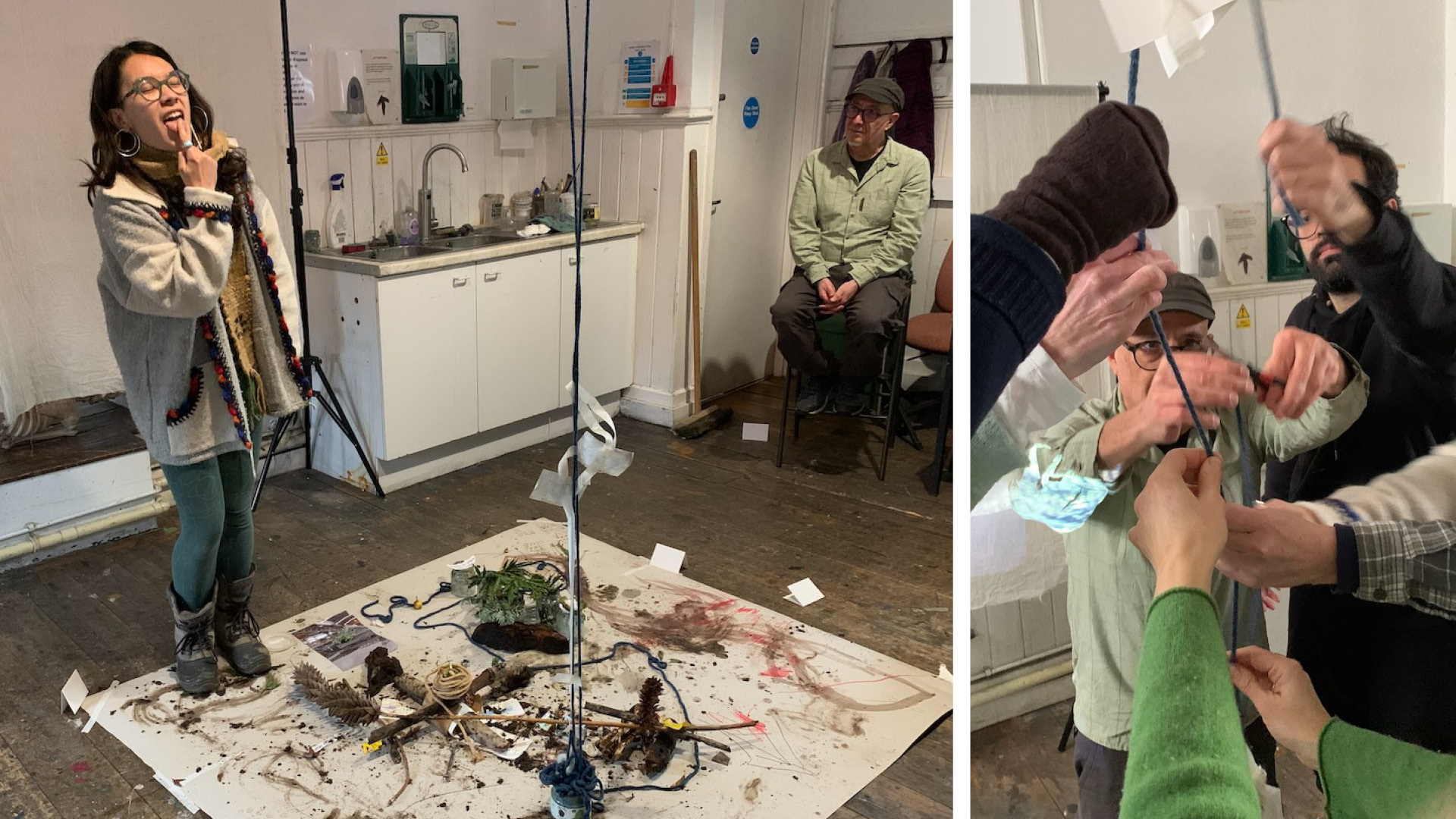 On a stormy Friday at the end of January ten of us gathered at The Mansion in Totnes for an experimental workshop to participate in collective making (and destroying and then rebuilding, as it turned out), prompted by a dérive.